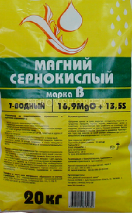 "Сульфат магния" марка Б - магниевое серосодержащее удобрение для выращивания различных культур на всех типах почв. Повышает урожайность, улучшает вкусовые качества овощных культур за счет увеличения содержания в плодах крахмала и витаминов. Используется при производстве сложносмешанных минеральных и органоминеральных удобрений, почвенных и торфяных грунтов.